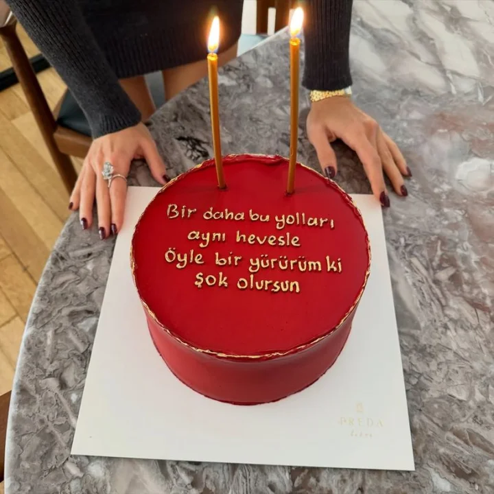 Doğum günü kutlamasına ait fotoğrafları Instagram hesabından paylaşan Erçel, hayranlarının yoğun beğenisini topladı. Ancak paylaşımlar arasında yer alan pastadaki mesaj dikkat çekti: